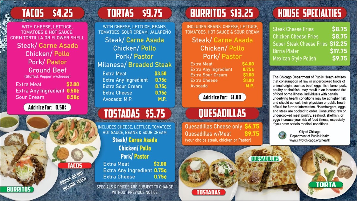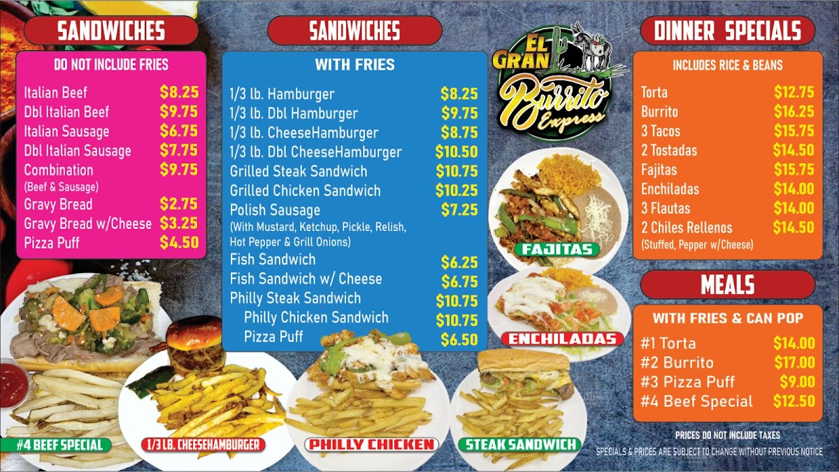 If you’re craving hearty Mexican comfort food on Chicago’s West Side, the El Gran Burrito Express #3 Menu is the kind you glance at once and instantly know what you’re ordering. Located at 334 N Laramie Ave in Chicago, this spot keeps things simple in the best way. You’ll find generously packed burritos, tacos loaded with flavor, and combo plates that make it hard to choose just one thing. And while the portions are big, the flavors are even bigger, blending warmth, spice, and that made-fresh feel you hope for in a neighborhood go-to.